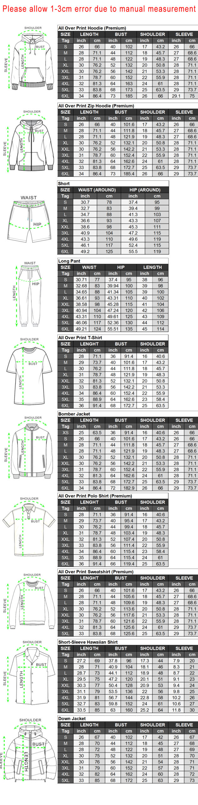 All products are made-to-order and proudly printed with the best screen printing or print to garment processes available. Our high construction quality with great attention to detail ensures it won’t ever fade, crack, or peel! Please choose the right size by our size chart.