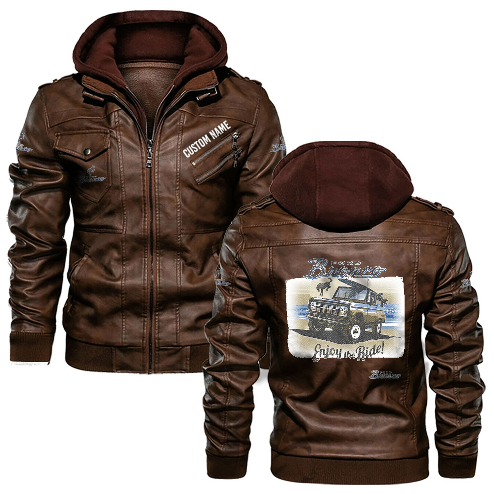 Ford Bronco, Ford motor company full style leather jackets, black and brown vintage style, customize name and number