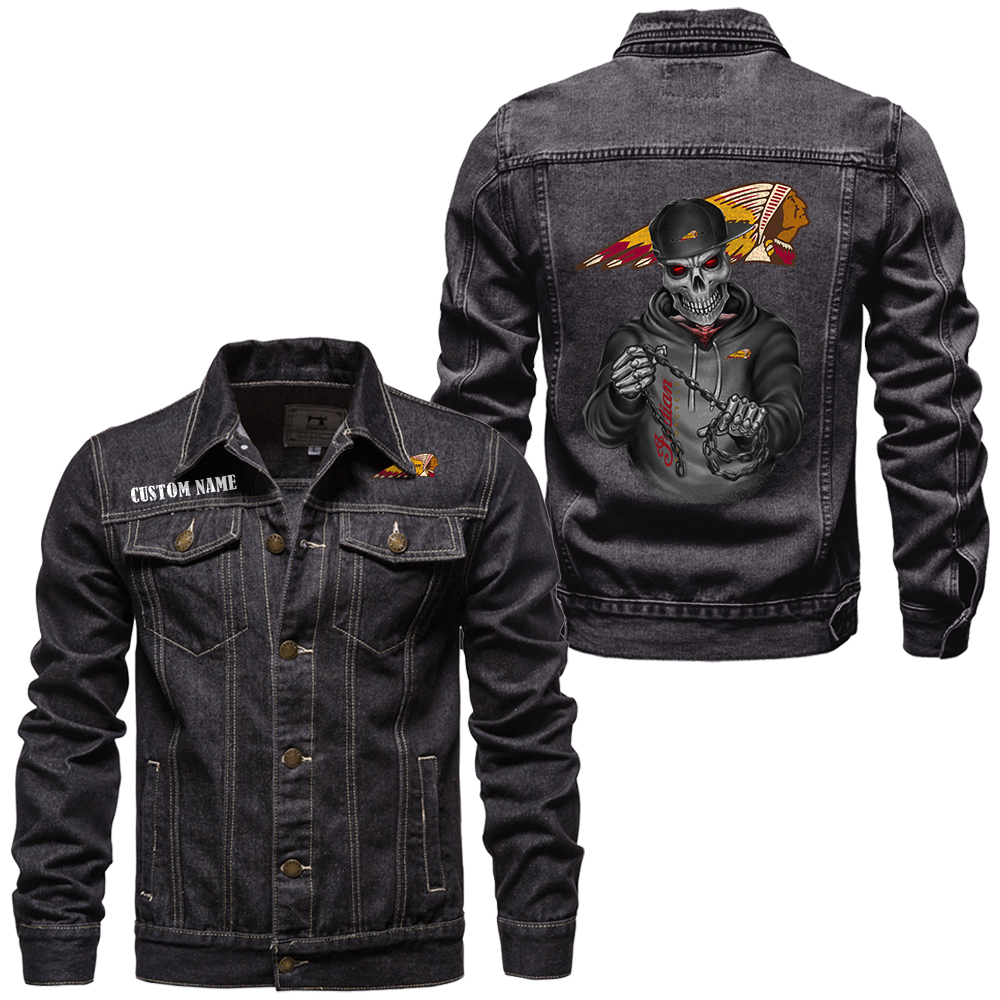 Indian Denim jacket Vintage Style Black, Light-Blue and Dark-Blue Color, Customize name, Logo Car or motor model, Denim clothing