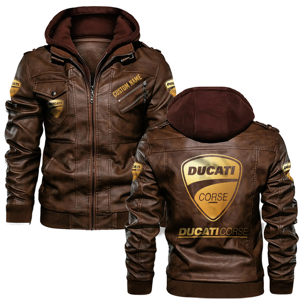 Ducati Corse Golden Logo full style leather jackets, black and brown vintage style, customize name and logo