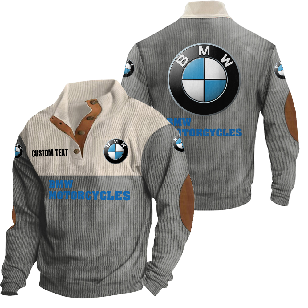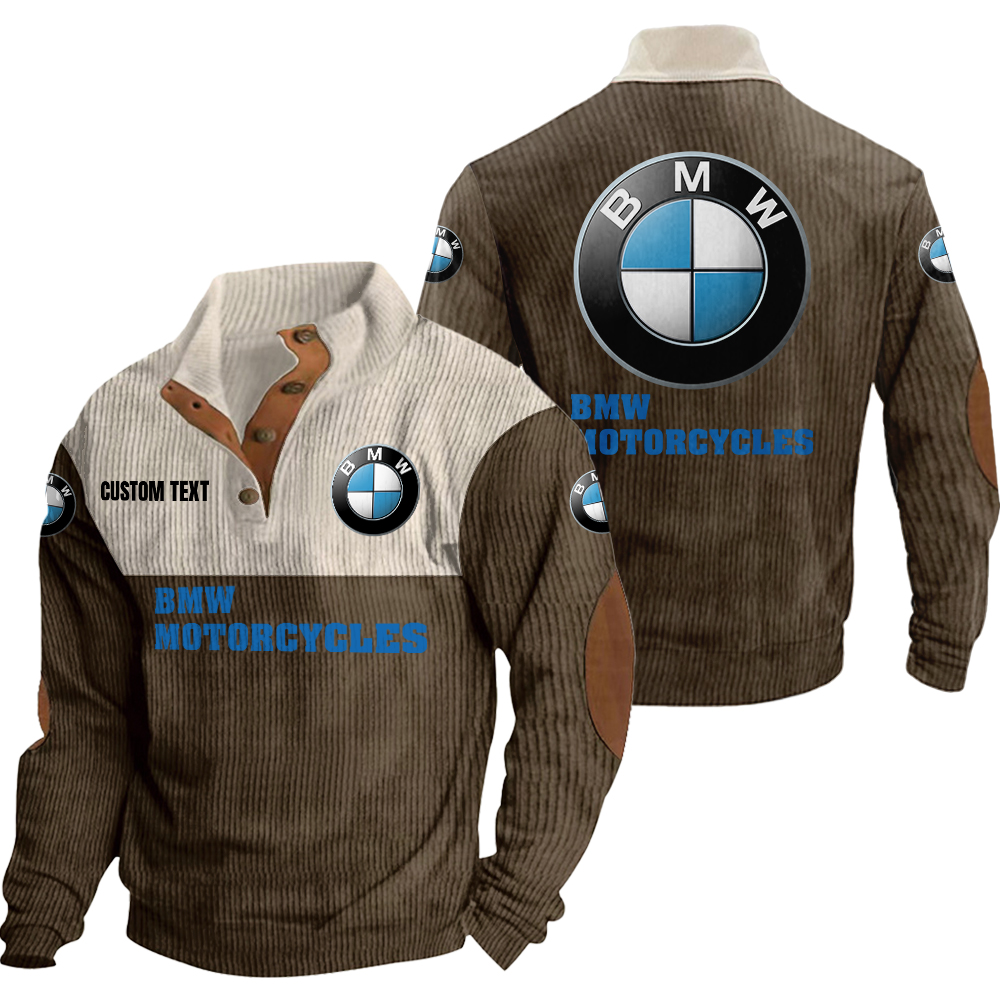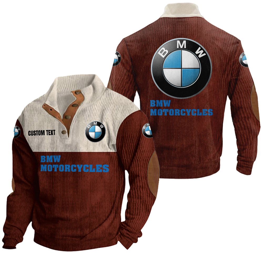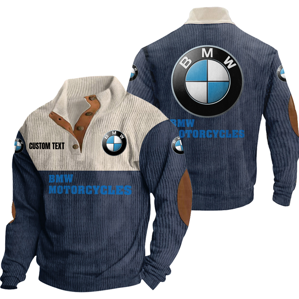 bmw motorcycles Men’s Corduroy Casual Stand Collar Sweatshirts Vintage Color Customize Name and Logo