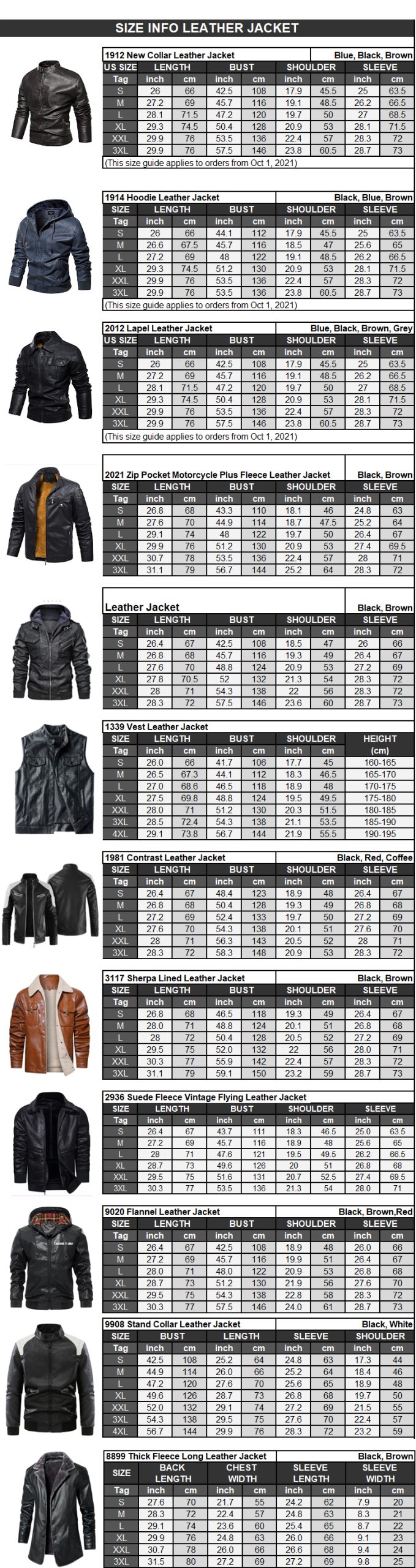 Leather Jacket Size Chart: